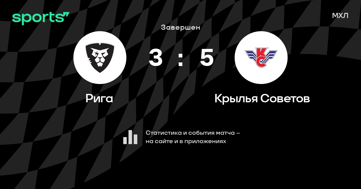 В прошедшем матче в рамках турнира МХЛ состоялась встреча команд Рига - Крылья Советов со счетом 3 : 5.