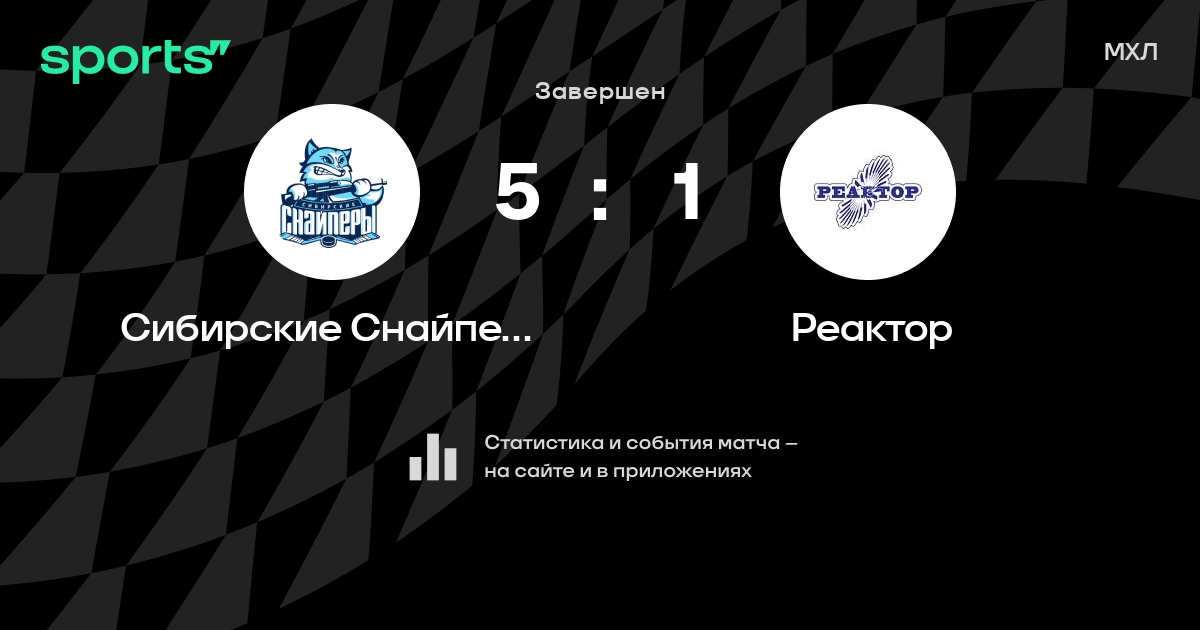 В прошедшем матче в рамках турнира МХЛ состоялась встреча команд Сибирские Снайперы - Реактор со счетом 5 : 1.