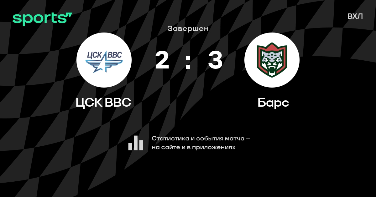 В прошедшем матче в рамках турнира ВХЛ состоялась встреча команд ЦСК ВВС - Барс со счетом 2 : 3.
