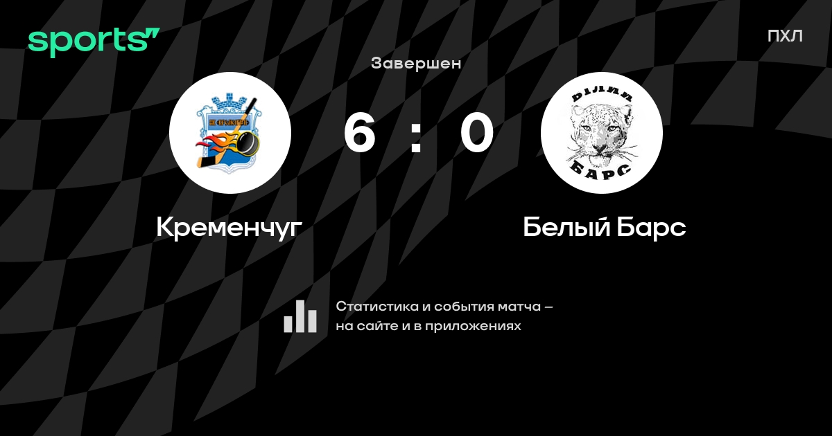 В прошедшем матче в рамках турнира ПХЛ состоялась встреча команд Кременчуг - Белый Барс со счетом 6 : 0.