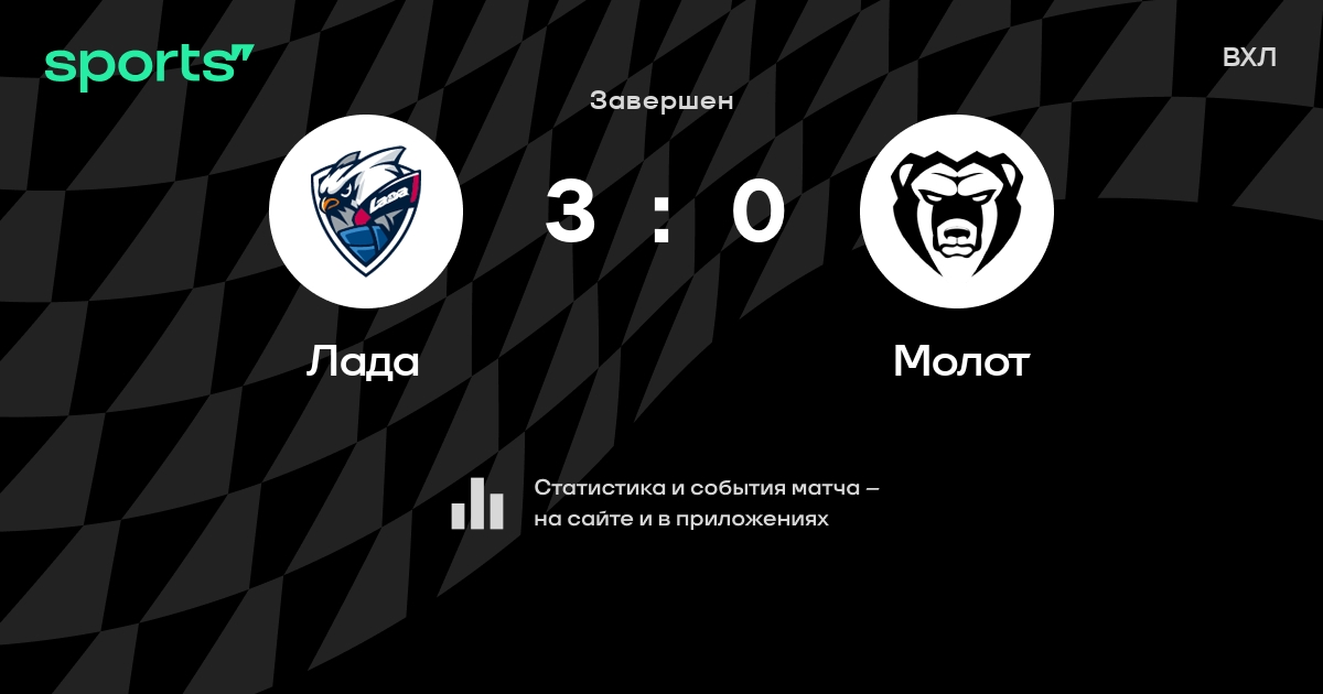 В прошедшем матче в рамках турнира ВХЛ состоялась встреча команд Лада - Молот со счетом 3 : 0.