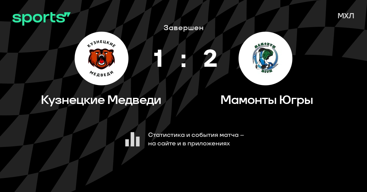 В прошедшем матче в рамках турнира МХЛ состоялась встреча команд Кузнецкие Медведи - Мамонты Югры со счетом 1 : 2.