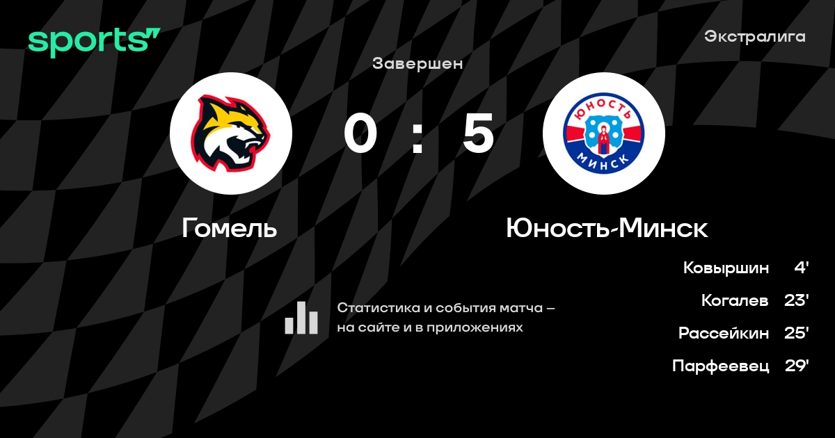 В прошедшем матче в рамках турнира Экстралига состоялась встреча команд Гомель - Юность-Минск в городе Гомель (Беларусь) на стадионе Ледовый дворец Гомель (вместимость - 2700)