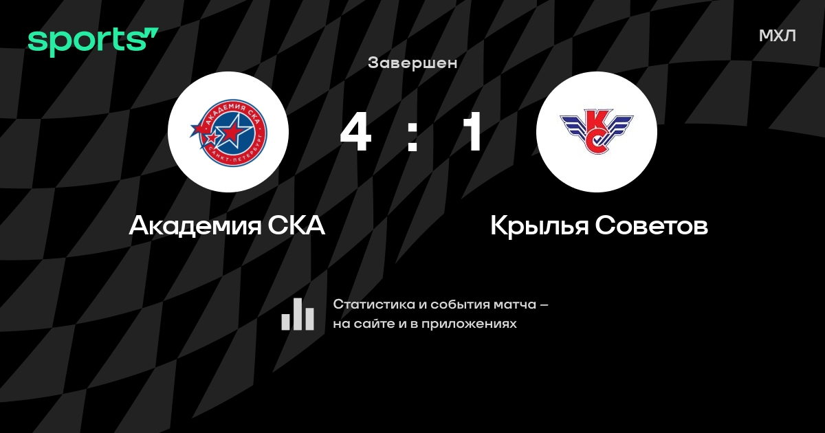 В прошедшем матче в рамках турнира МХЛ состоялась встреча команд Академия СКА - Крылья Советов в городе на стадионе Hockey City со счетом 4 : 1.