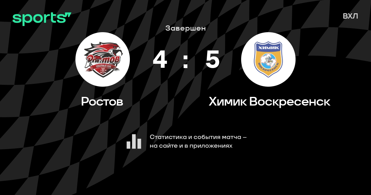В прошедшем матче в рамках турнира ВХЛ состоялась встреча команд Ростов - Химик Воскресенск в городе на стадионе Ice Arena со счетом 4 : 5.