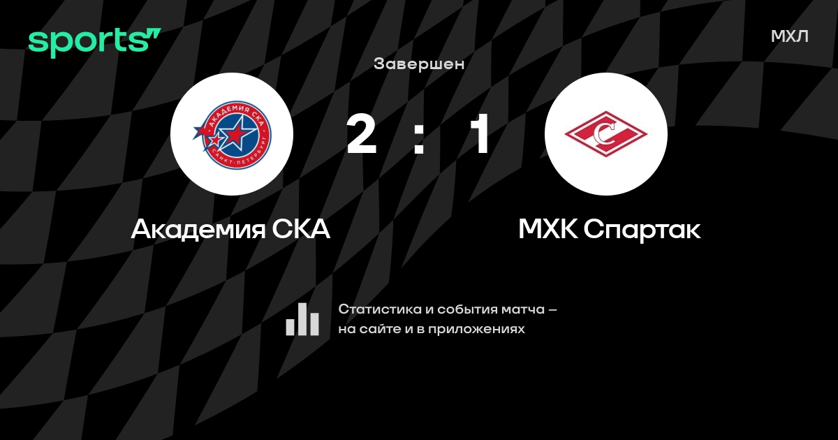 В прошедшем матче в рамках турнира МХЛ состоялась встреча команд Академия СКА - МХК Спартак в городе на стадионе Hockey City со счетом 2 : 1.