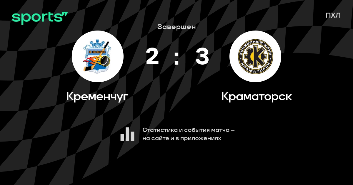 В прошедшем матче в рамках турнира ПХЛ состоялась встреча команд Кременчуг - Краматорск в городе на стадионе Aysberh со счетом 2 : 3.