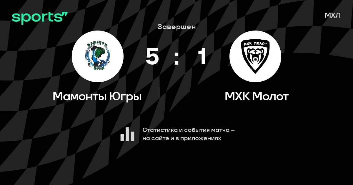 В прошедшем матче в рамках турнира МХЛ состоялась встреча команд Мамонты Югры - МХК Молот в городе на стадионе Arena-Yugra со счетом 5 : 1.