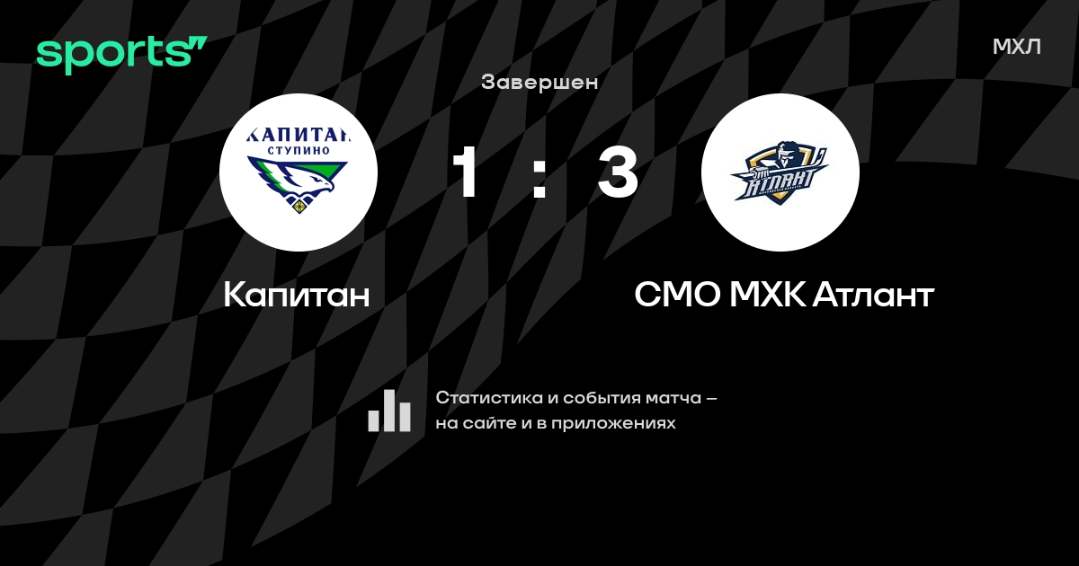 В прошедшем матче в рамках турнира МХЛ состоялась встреча команд Капитан - СМО МХК Атлант в городе на стадионе LD im. V. Bobrova со счетом 1 : 3.