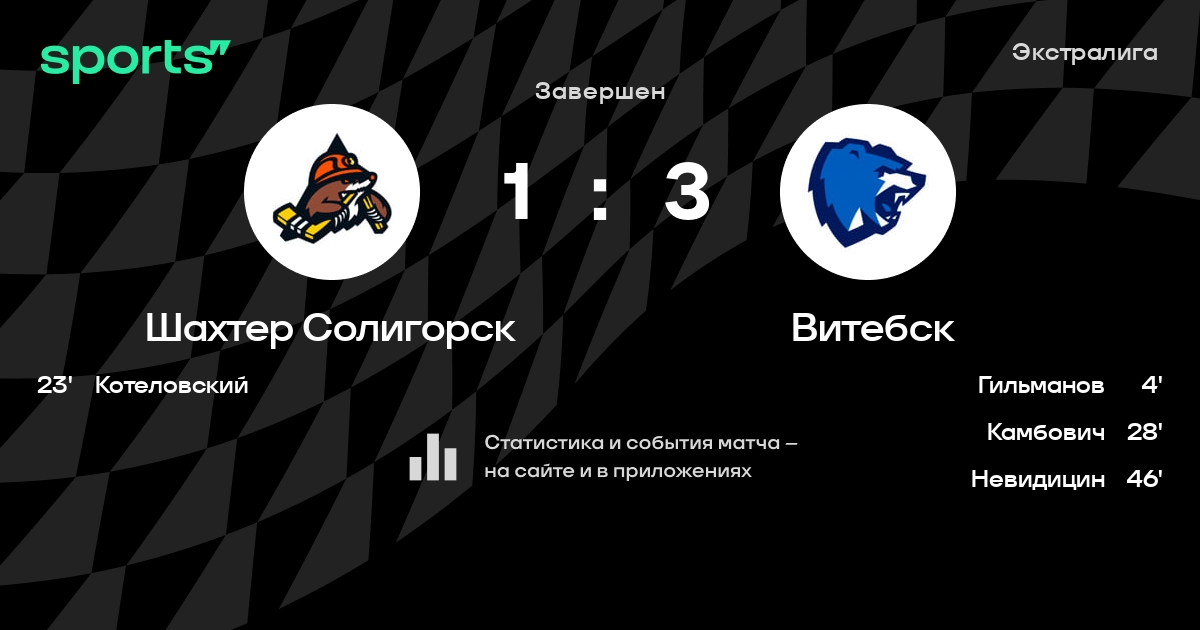 В прошедшем матче в рамках турнира Экстралига состоялась встреча команд Шахтер Солигорск - Витебск в городе Солигорск (Беларусь) на стадионе Ледовый дворец спорта Солигорск (вместимость - 1800)