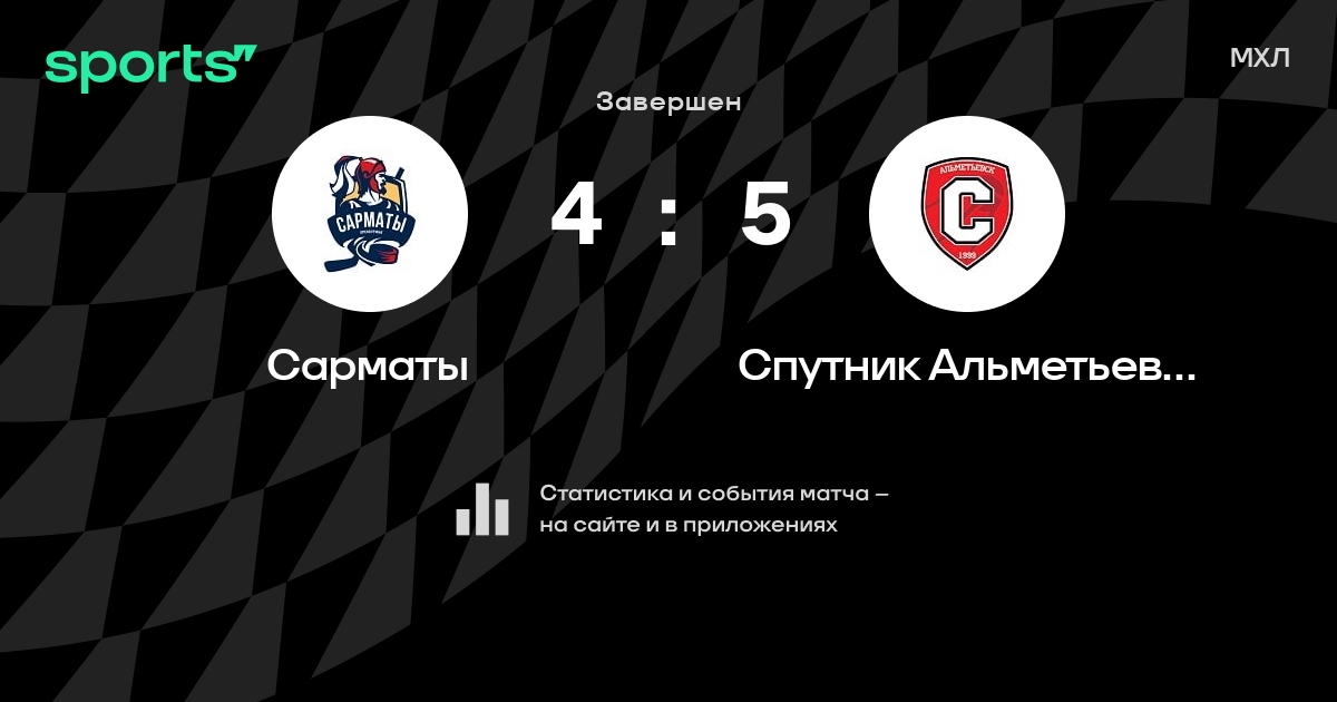 В прошедшем матче в рамках турнира МХЛ состоялась встреча команд Сарматы - Спутник Альметьевск в городе на стадионе Ice Palace Yubileyny со счетом 4 : 5.