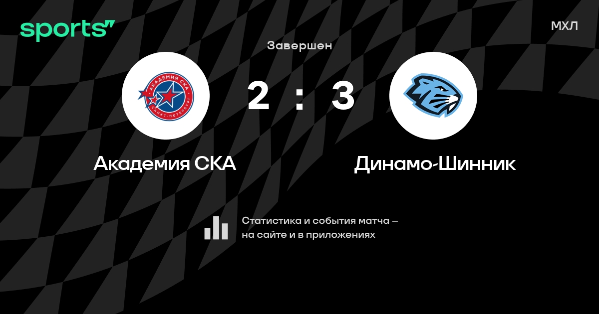 В прошедшем матче в рамках турнира МХЛ состоялась встреча команд Академия СКА - Динамо-Шинник в городе на стадионе Hockey City со счетом 2 : 3.