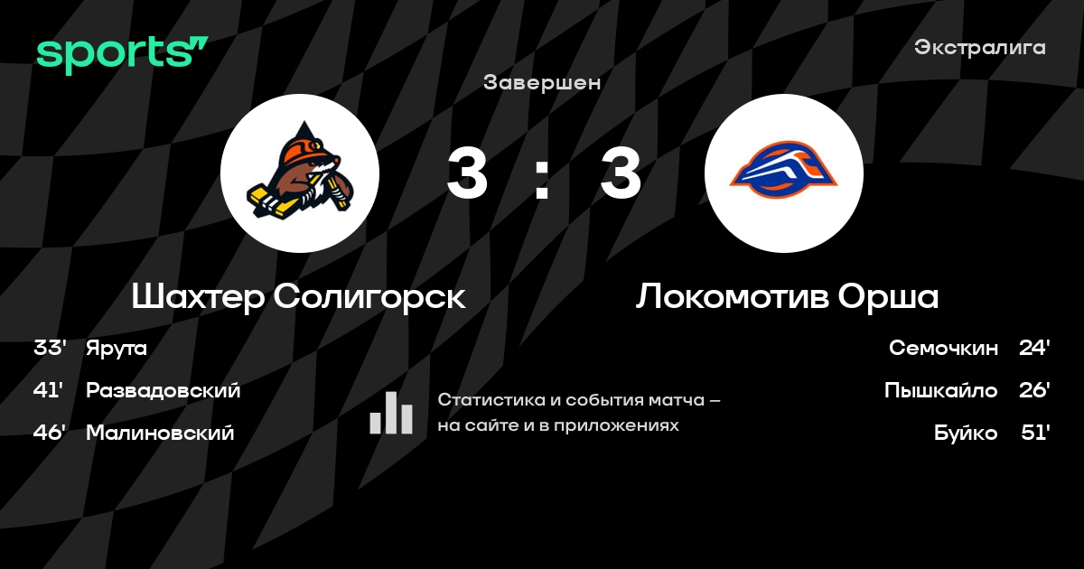 В прошедшем матче в рамках турнира Экстралига состоялась встреча команд Шахтер Солигорск - Локомотив Орша в городе Солигорск (Беларусь) на стадионе Ледовый дворец спорта Солигорск (вместимость - 1800)