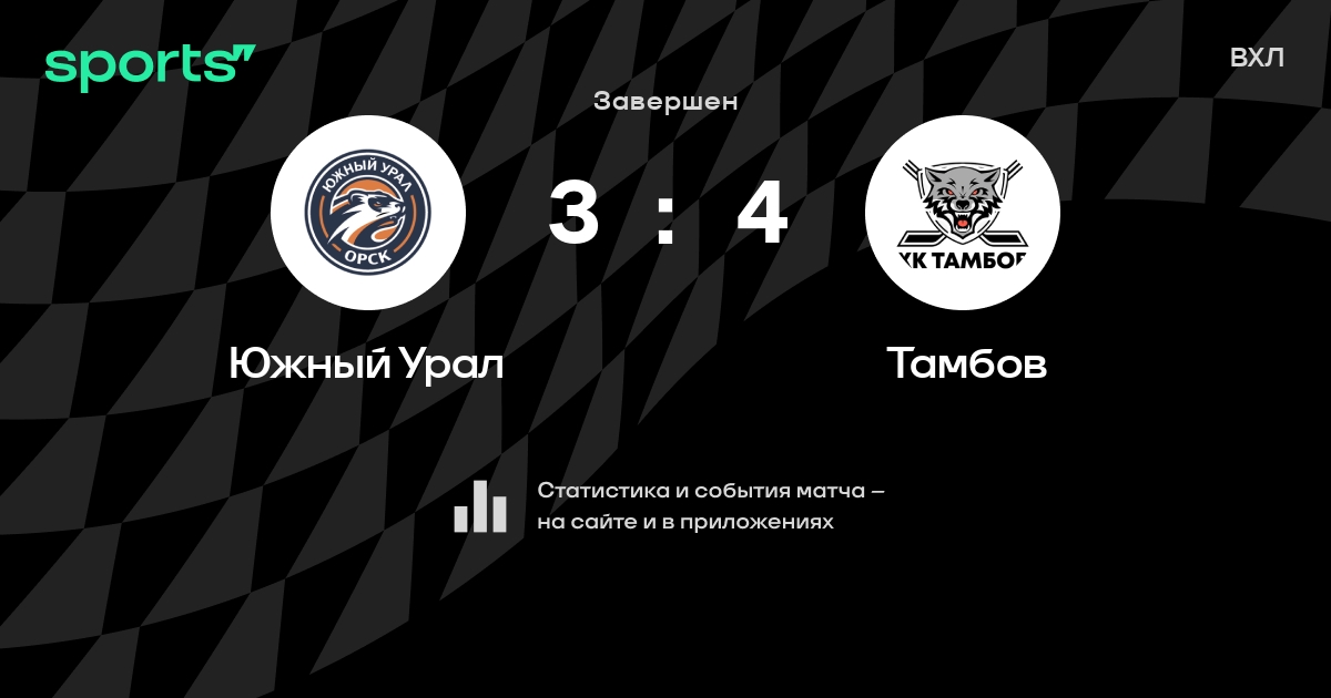 В прошедшем матче в рамках турнира ВХЛ состоялась встреча команд Южный Урал - Тамбов в городе на стадионе Ice Palace Yubileyny со счетом 3 : 4.