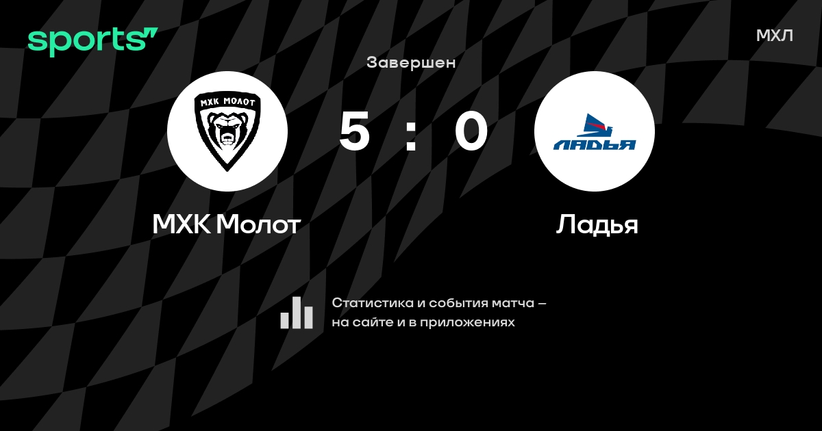 В прошедшем матче в рамках турнира МХЛ состоялась встреча команд МХК Молот - Ладья в городе на стадионе Molot со счетом 5 : 0.