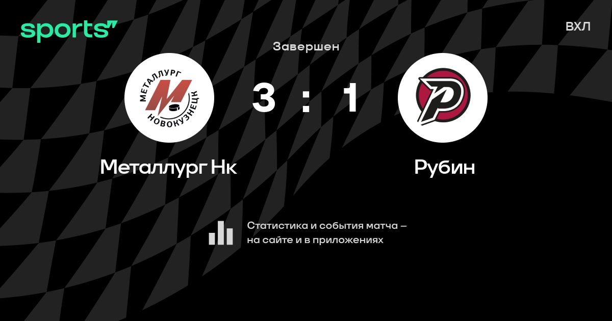 В прошедшем матче в рамках турнира ВХЛ состоялась встреча команд Металлург Нк - Рубин в городе на стадионе Kuznetskiy Led со счетом 3 : 1.