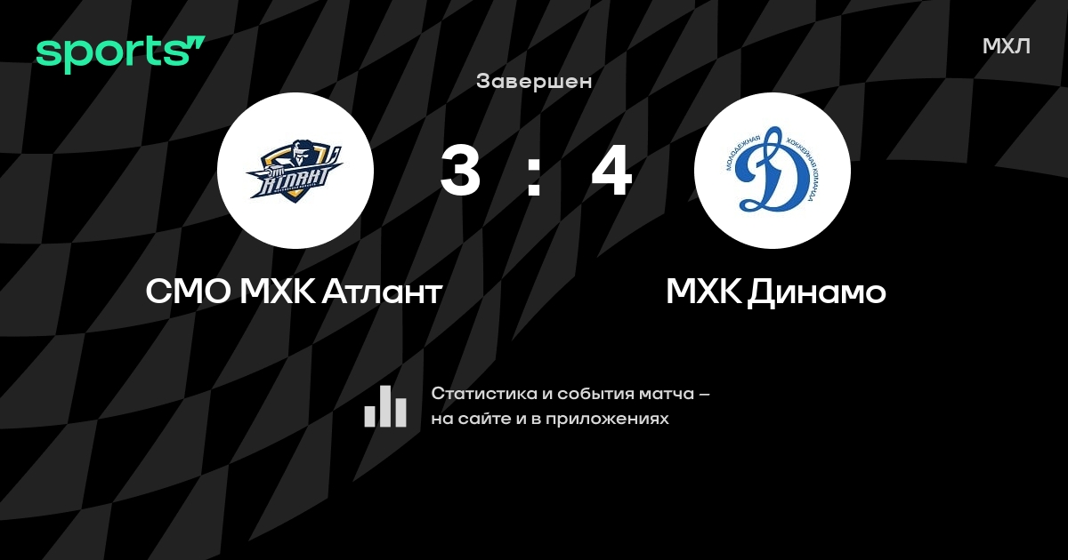 В прошедшем матче в рамках турнира МХЛ состоялась встреча команд СМО МХК Атлант - МХК Динамо в городе Мытищи (Россия) на стадионе Арена-Мытищи (вместимость - 7000)