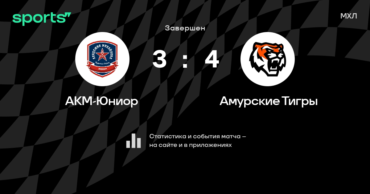 В прошедшем матче в рамках турнира МХЛ состоялась встреча команд АКМ-Юниор - Амурские Тигры в городе на стадионе Ice Palace со счетом 3 : 4.