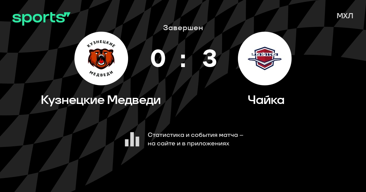 В прошедшем матче в рамках турнира МХЛ состоялась встреча команд Кузнецкие Медведи - Чайка в городе на стадионе Kuznetskiy Led со счетом 0 : 3.