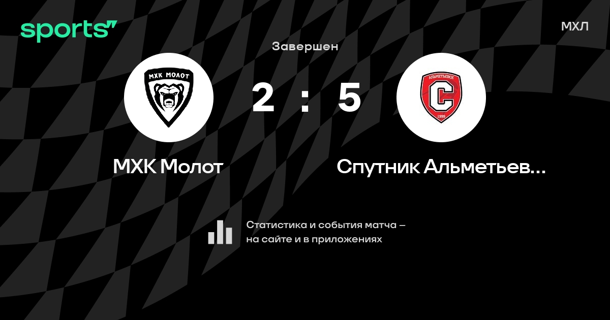 В прошедшем матче в рамках турнира МХЛ состоялась встреча команд МХК Молот - Спутник Альметьевск в городе на стадионе Molot со счетом 2 : 5.