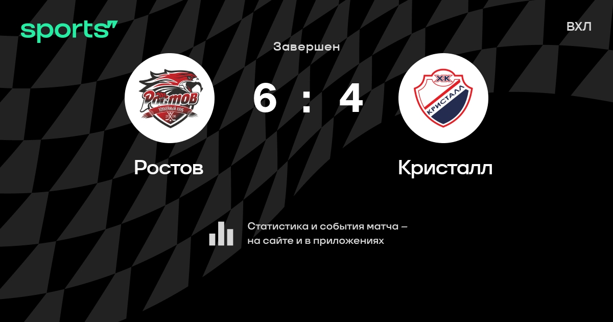 В прошедшем матче в рамках турнира ВХЛ состоялась встреча команд Ростов - Кристалл в городе на стадионе Ice Arena со счетом 6 : 4.