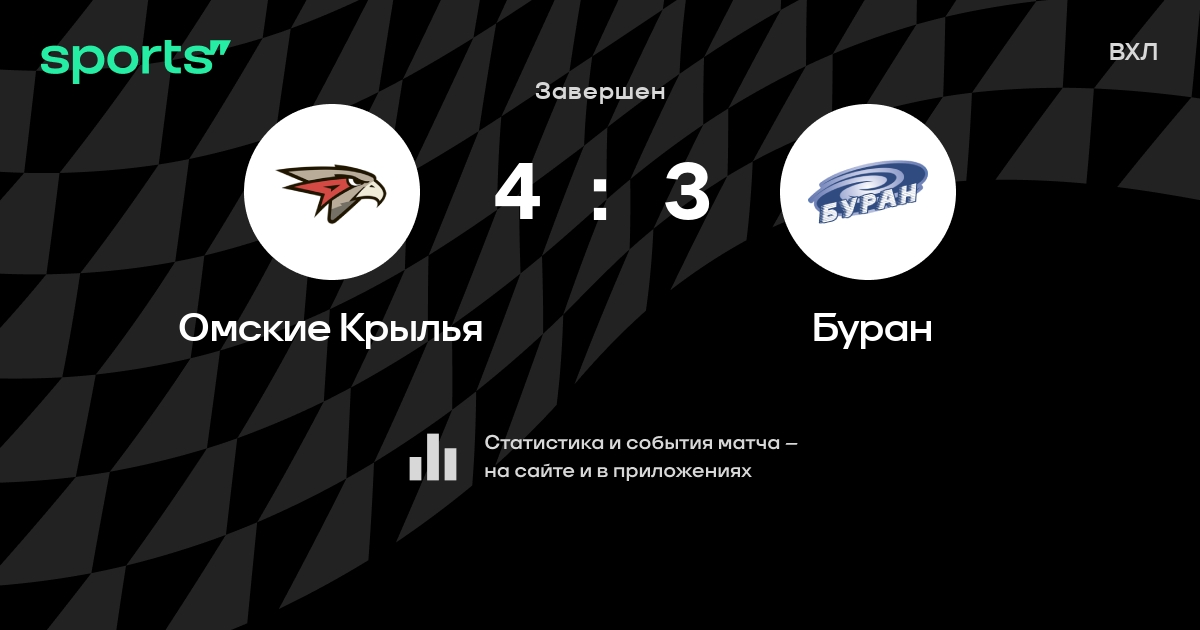 В прошедшем матче в рамках турнира ВХЛ состоялась встреча команд Омские Крылья - Буран в городе на стадионе Avangard Hockey Academy со счетом 4 : 3.