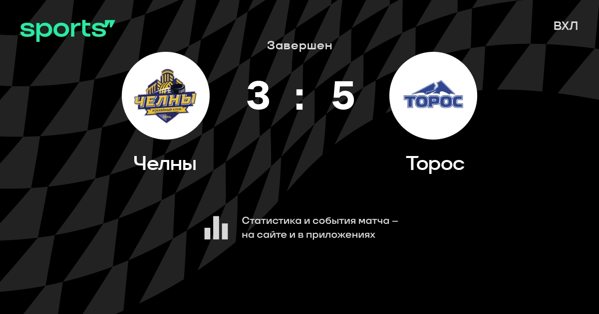 В прошедшем матче в рамках турнира ВХЛ состоялась встреча команд Челны - Торос в городе на стадионе Ledovyy dvorets sporta со счетом 3 : 5.