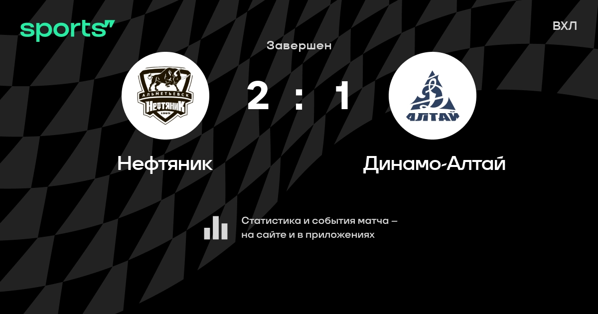 В прошедшем матче в рамках турнира ВХЛ состоялась встреча команд Нефтяник - Динамо-Алтай в городе на стадионе Dvorets Sporta Yubileynyy со счетом 2 : 1.
