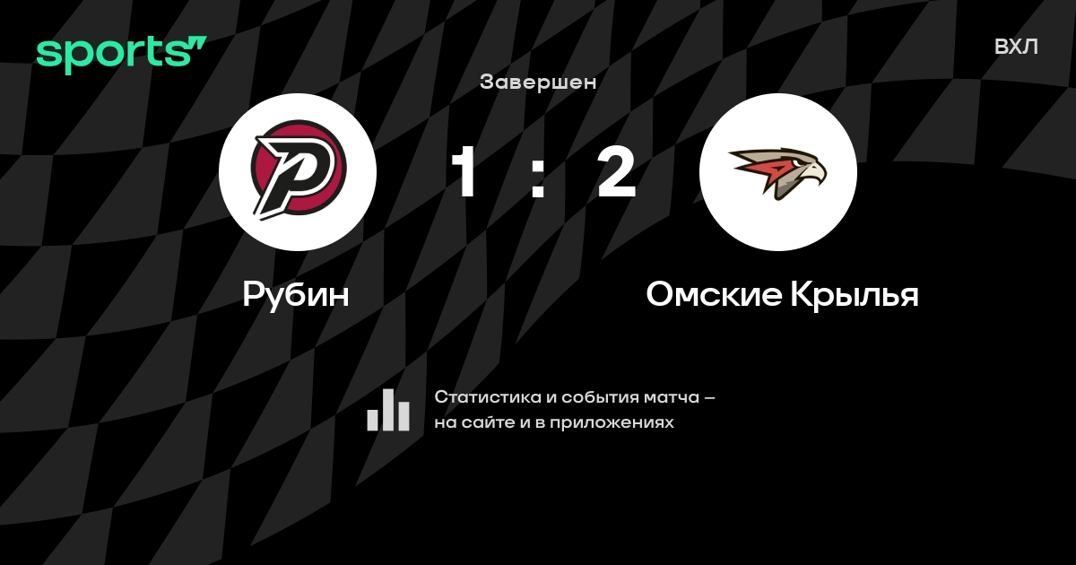 В прошедшем матче в рамках турнира ВХЛ состоялась встреча команд Рубин - Омские Крылья в городе Казань (Россия) на стадионе Дворец спорта (вместимость - 3523)