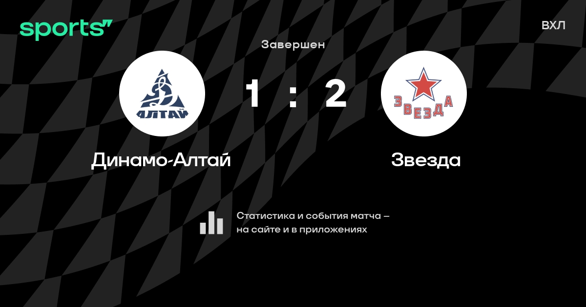 В прошедшем матче в рамках турнира ВХЛ состоялась встреча команд Динамо-Алтай - Звезда в городе на стадионе Ledovyy dvorets im. G. Titov со счетом 1 : 2.