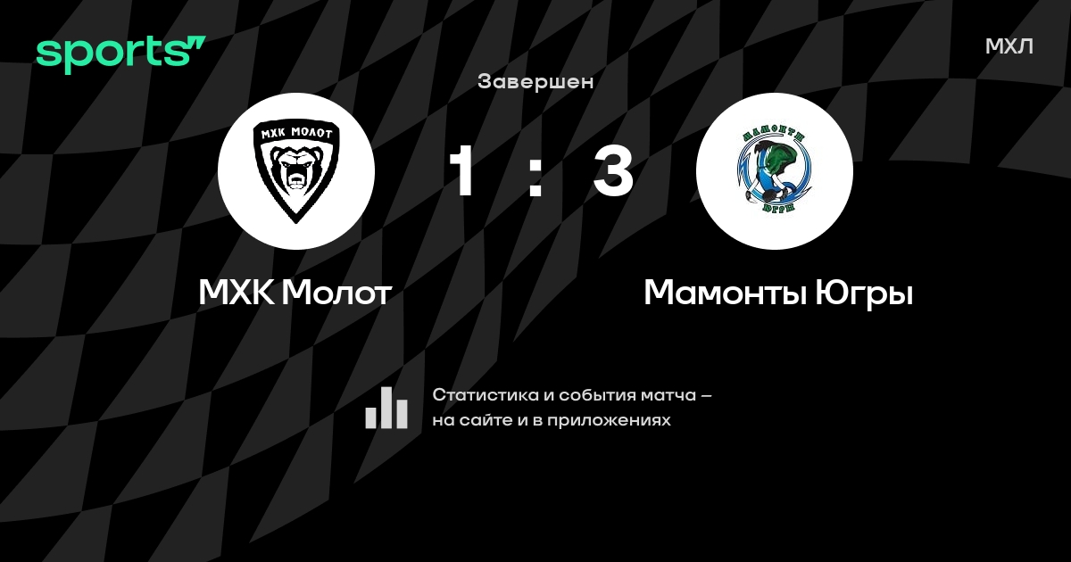 В прошедшем матче в рамках турнира МХЛ состоялась встреча команд МХК Молот - Мамонты Югры в городе на стадионе Molot со счетом 1 : 3.