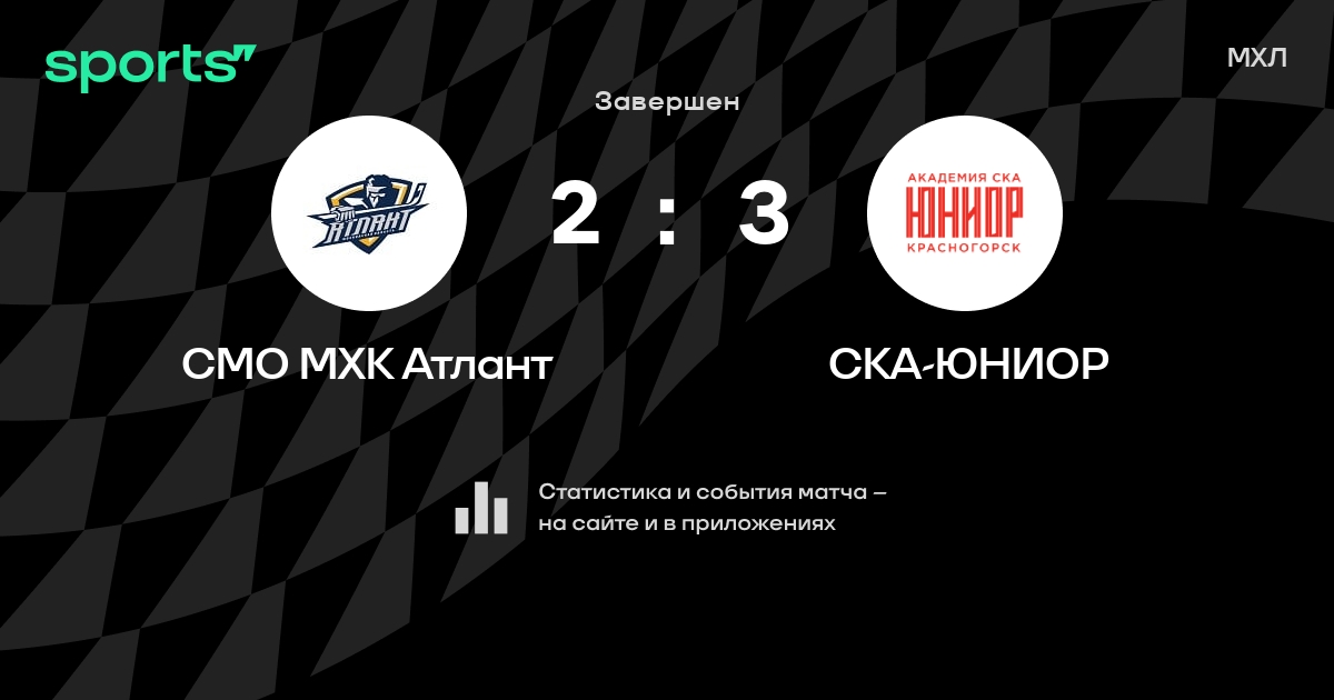 В прошедшем матче в рамках турнира МХЛ состоялась встреча команд СМО МХК Атлант - СКА-ЮНИОР в городе Мытищи (Россия) на стадионе Арена-Мытищи (вместимость - 7000)