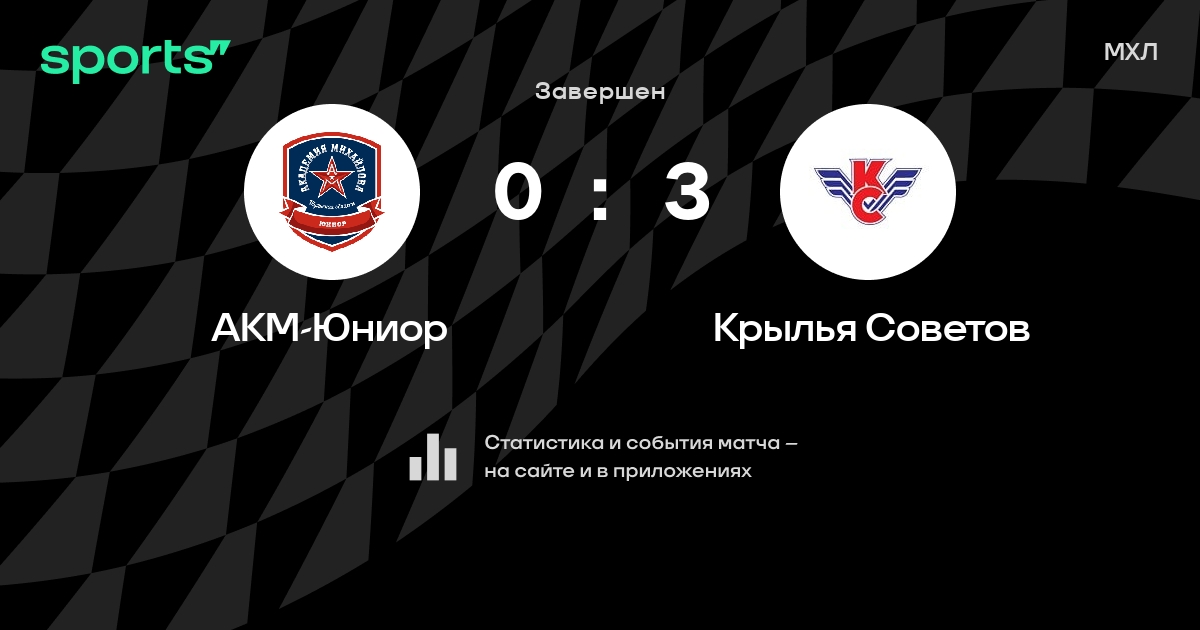 В прошедшем матче в рамках турнира МХЛ состоялась встреча команд АКМ-Юниор - Крылья Советов в городе на стадионе Ice Palace со счетом 0 : 3.