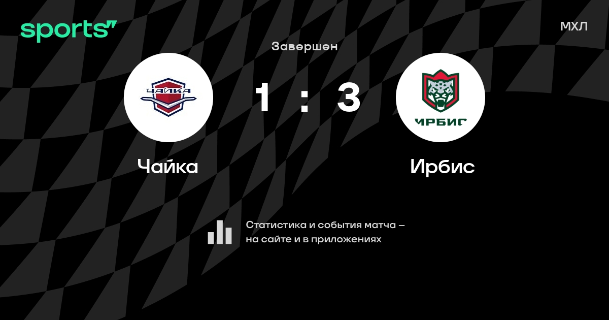 В прошедшем матче в рамках турнира МХЛ состоялась встреча команд Чайка - Ирбис в городе на стадионе Viktor Konovalenko Sports Palace со счетом 1 : 3.