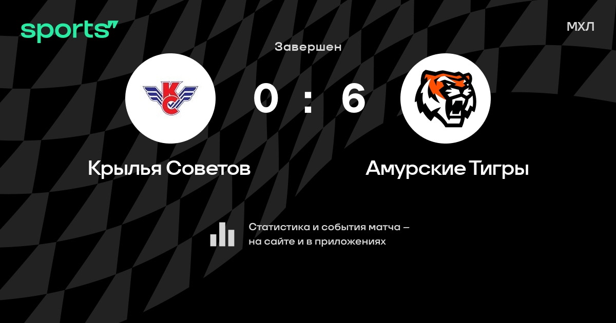 В прошедшем матче в рамках турнира МХЛ состоялась встреча команд Крылья Советов - Амурские Тигры в городе на стадионе Krylya Sovetov Arena со счетом 0 : 6.