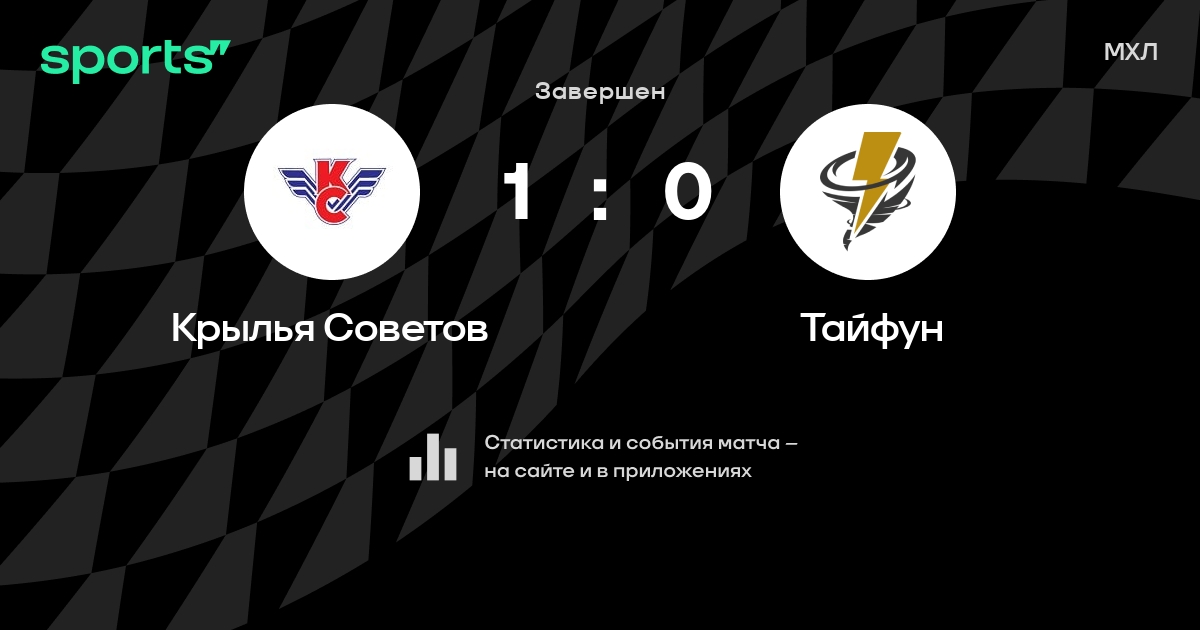 В прошедшем матче в рамках турнира МХЛ состоялась встреча команд Крылья Советов - Тайфун в городе на стадионе Krylya Sovetov Arena со счетом 1 : 0.