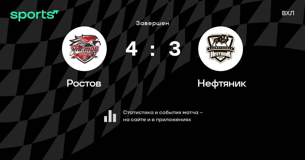 В прошедшем матче в рамках турнира ВХЛ состоялась встреча команд Ростов - Нефтяник в городе на стадионе Ice Arena со счетом 4 : 3.