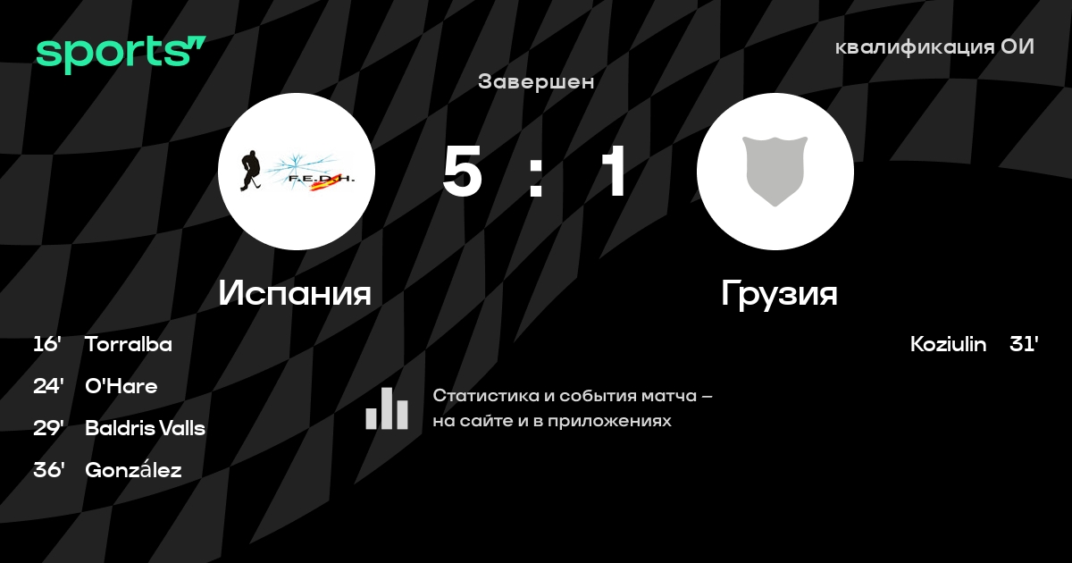 В прошедшем матче в рамках турнира квалификация ОИ состоялась встреча команд Испания - Грузия в городе Tilburg на стадионе IJssportcentrum Tilburg со счетом 5 : 1.