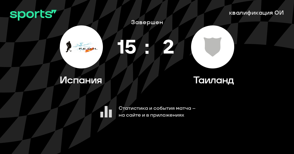 В прошедшем матче в рамках турнира квалификация ОИ состоялась встреча команд Испания - Таиланд в городе Tilburg на стадионе IJssportcentrum Tilburg со счетом 15 : 2.