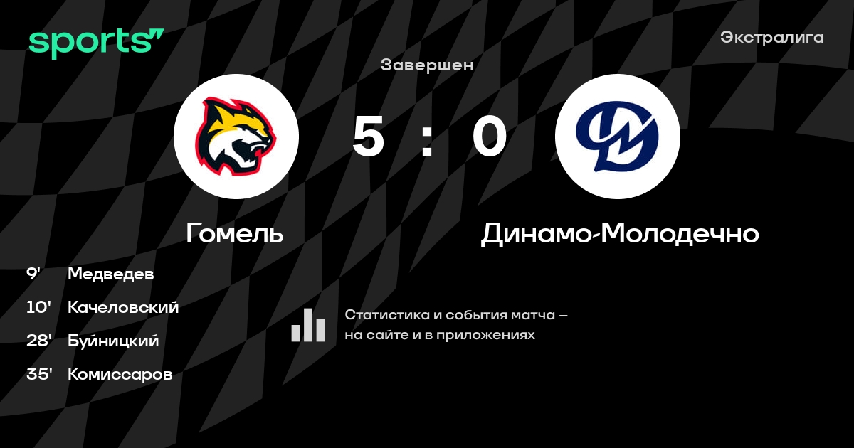 В прошедшем матче в рамках турнира Экстралига состоялась встреча команд Гомель - Динамо-Молодечно в городе Гомель (Беларусь) на стадионе Ледовый дворец Гомель (вместимость - 2700)