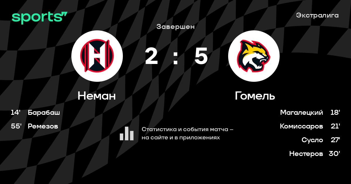 В прошедшем матче в рамках турнира Экстралига состоялась встреча команд Неман - Гомель в городе Солигорск (Беларусь) на стадионе Ледовый дворец спорта Солигорск (вместимость - 1800)