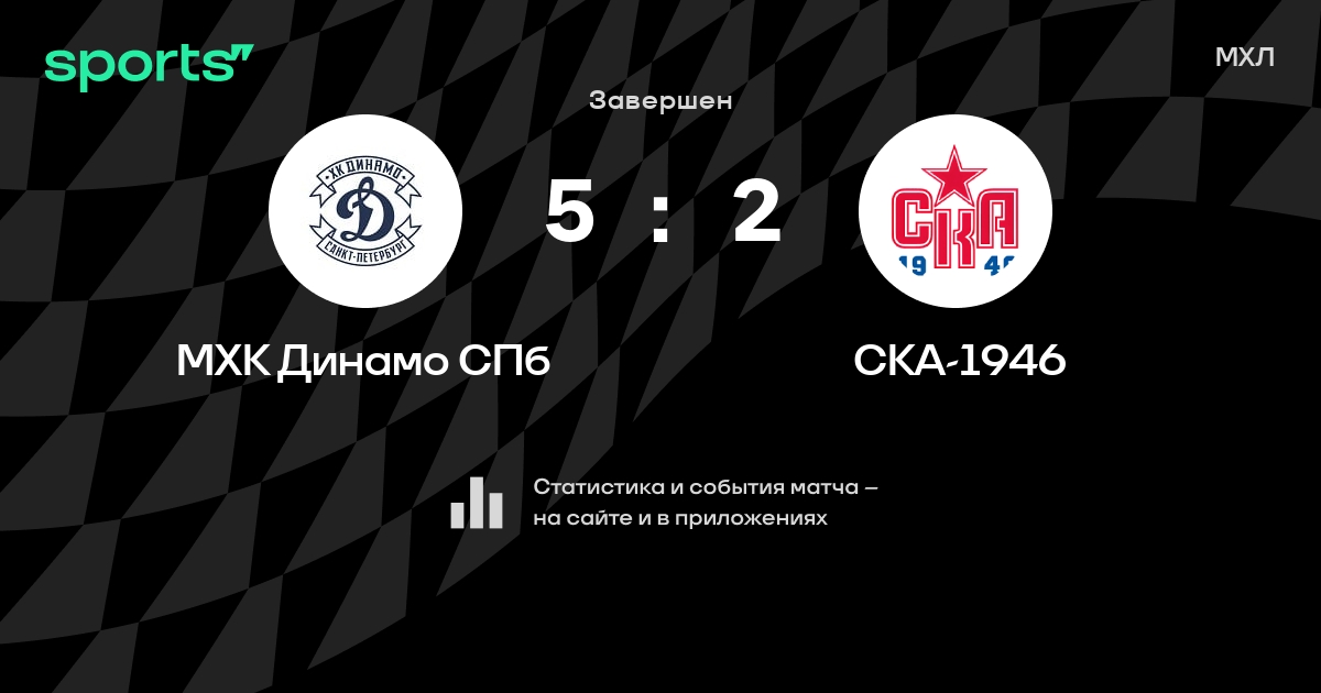 В прошедшем матче в рамках турнира МХЛ состоялась встреча команд МХК Динамо СПб - СКА-1946 в городе на стадионе SK Yubileynyy (Malaya Arena) со счетом 5 : 2.