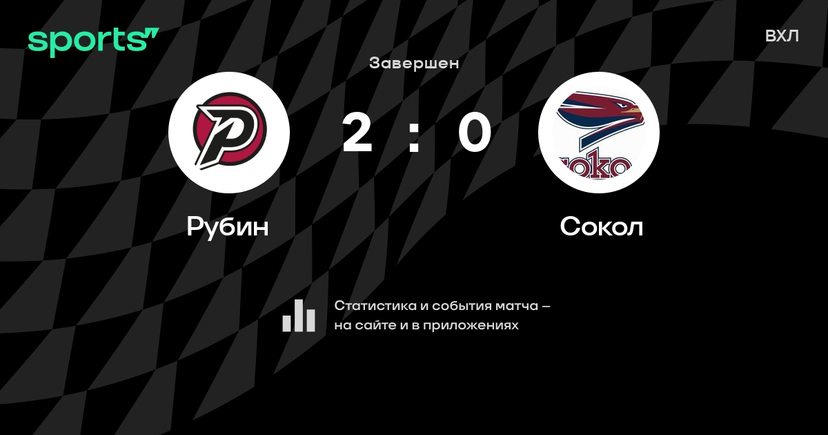 В прошедшем матче в рамках турнира ВХЛ состоялась встреча команд Рубин - Сокол в городе Казань (Россия) на стадионе Дворец спорта (вместимость - 3523) со счетом 2 : 0.