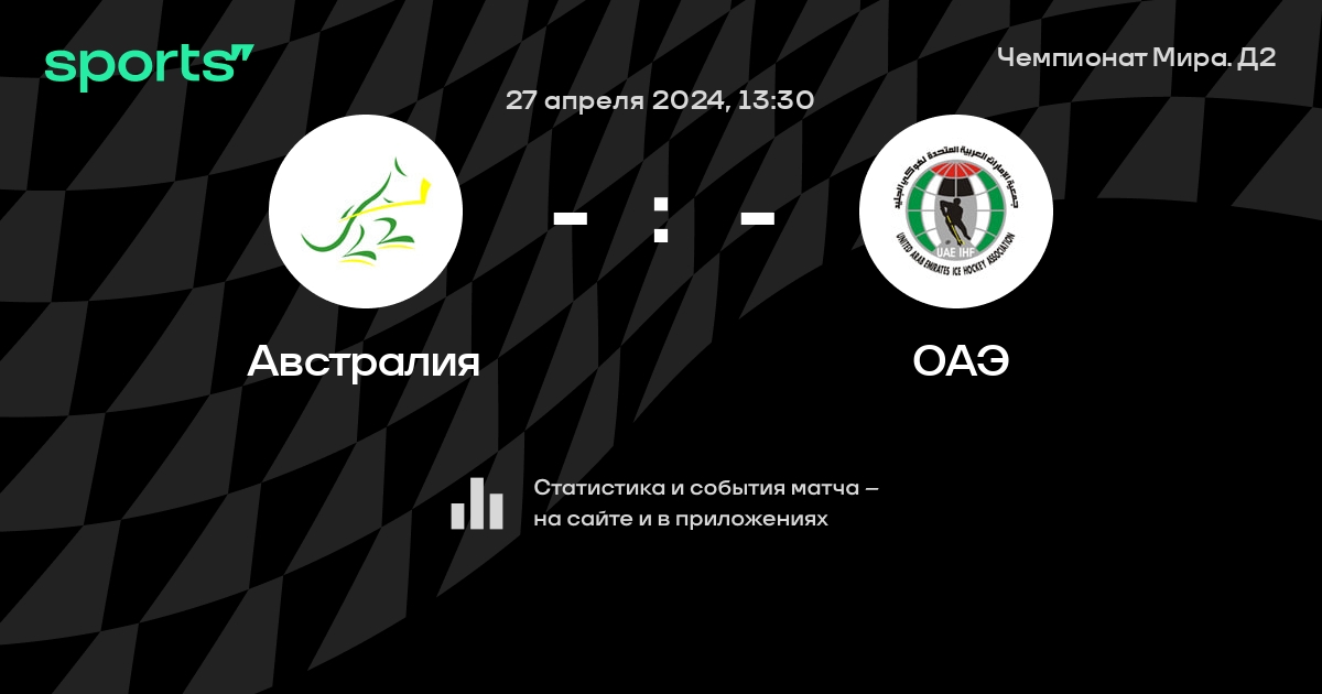 В предстоящем матче в рамках турнира Чемпионат Мира. Д2 пройдет встреча команд Австралия - ОАЭ в городе Belgrade на стадионе Pionir Ice Hall.