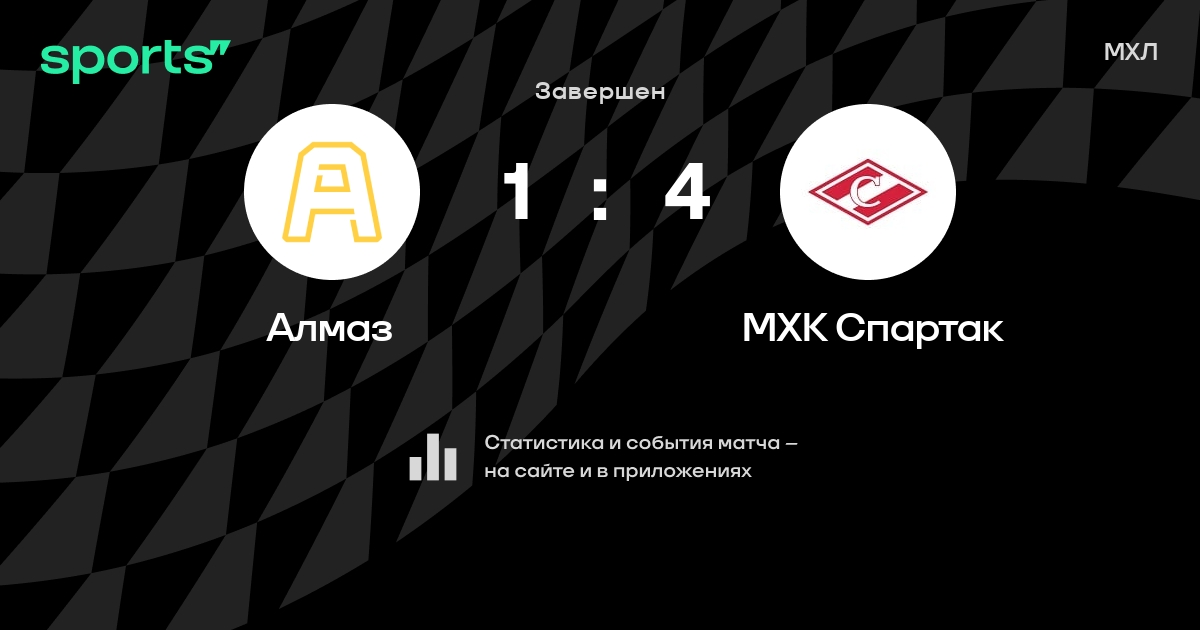 В прошедшем матче в рамках турнира МХЛ состоялась встреча команд Алмаз - МХК Спартак в городе Череповец (Россия) на стадионе Ледовый дворец (вместимость - 6000)