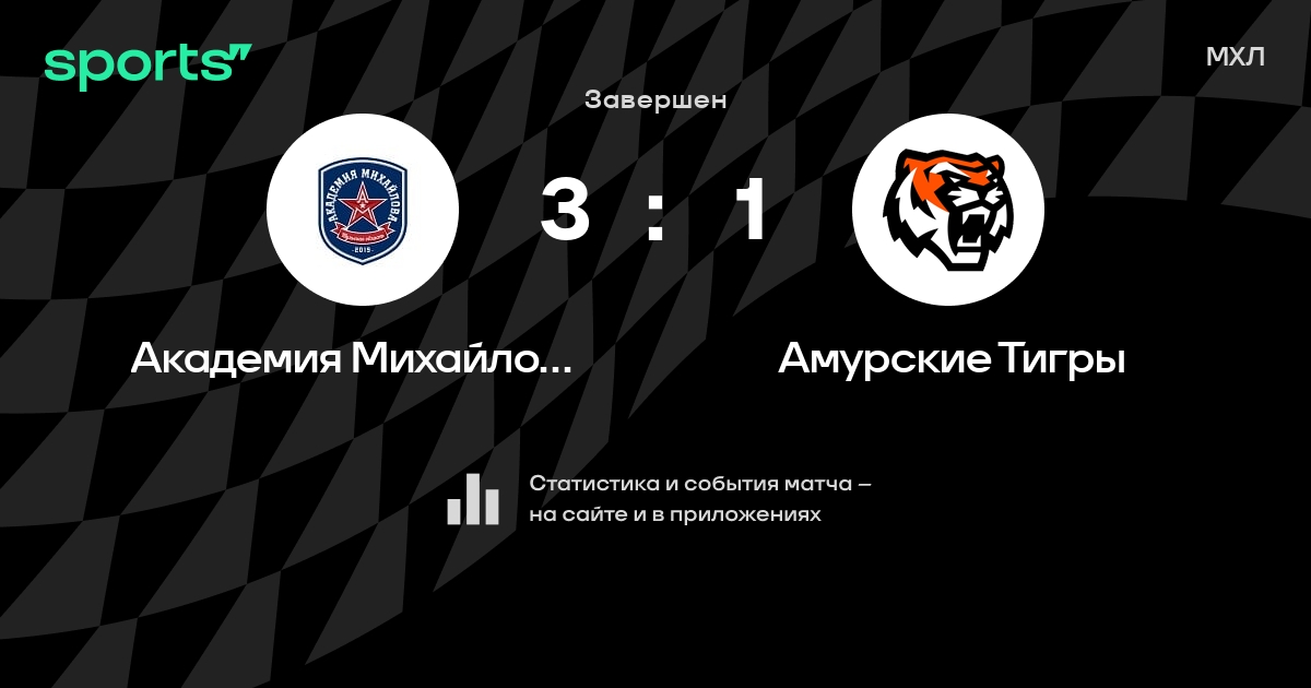 В прошедшем матче в рамках турнира МХЛ состоялась встреча команд Академия Михайлова - Амурские Тигры в городе на стадионе Ice Palace со счетом 3 : 1.