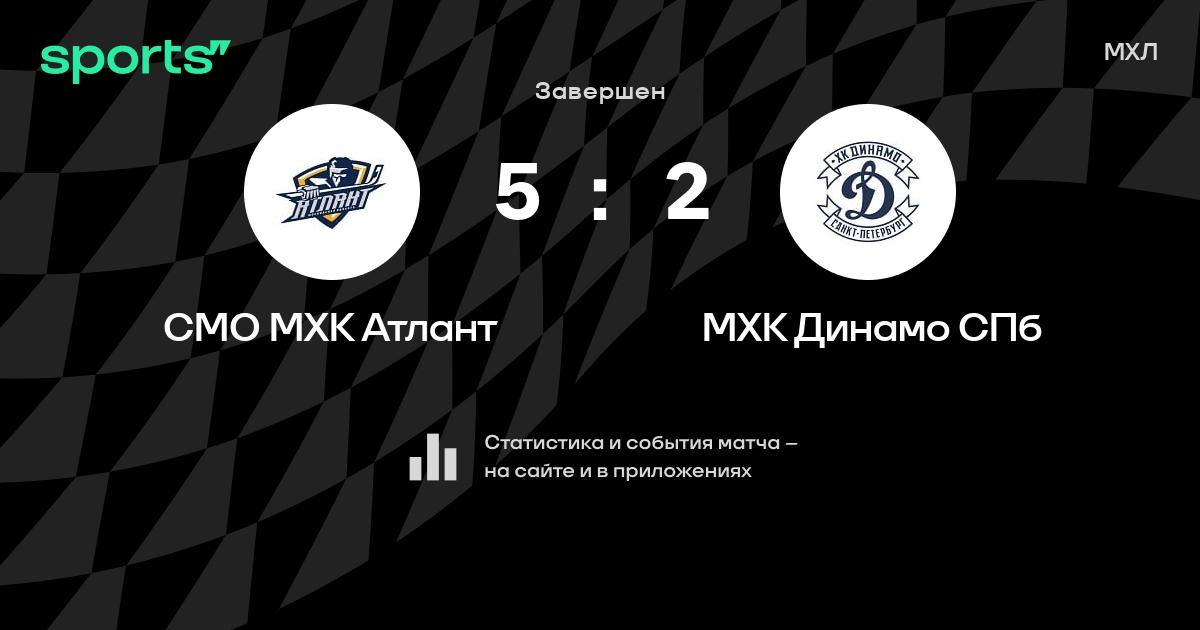 В прошедшем матче в рамках турнира МХЛ состоялась встреча команд СМО МХК Атлант - МХК Динамо СПб в городе Мытищи (Россия) на стадионе Арена-Мытищи (вместимость - 7000)