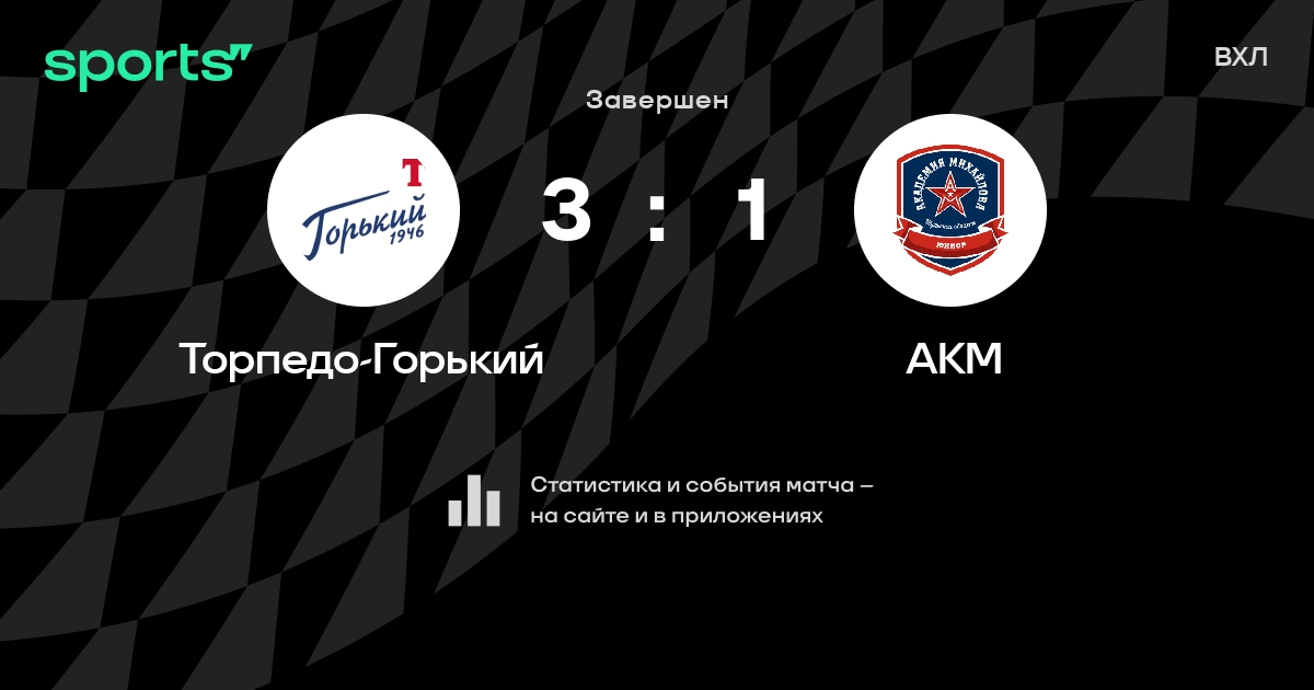 В прошедшем матче в рамках турнира ВХЛ состоялась встреча команд Торпедо-Горький - АКМ в городе Нижний Новгород (Россия) на стадионе Нагорный дворец спорта профсоюзов (вместимость - 5500)