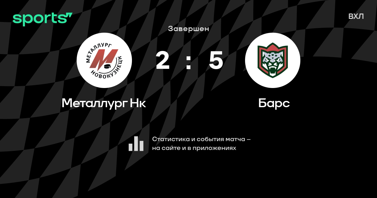 В прошедшем матче в рамках турнира ВХЛ состоялась встреча команд Металлург Нк - Барс в городе на стадионе Dvorets sporta Kuznetsk Metallurg со счетом 2 : 5.