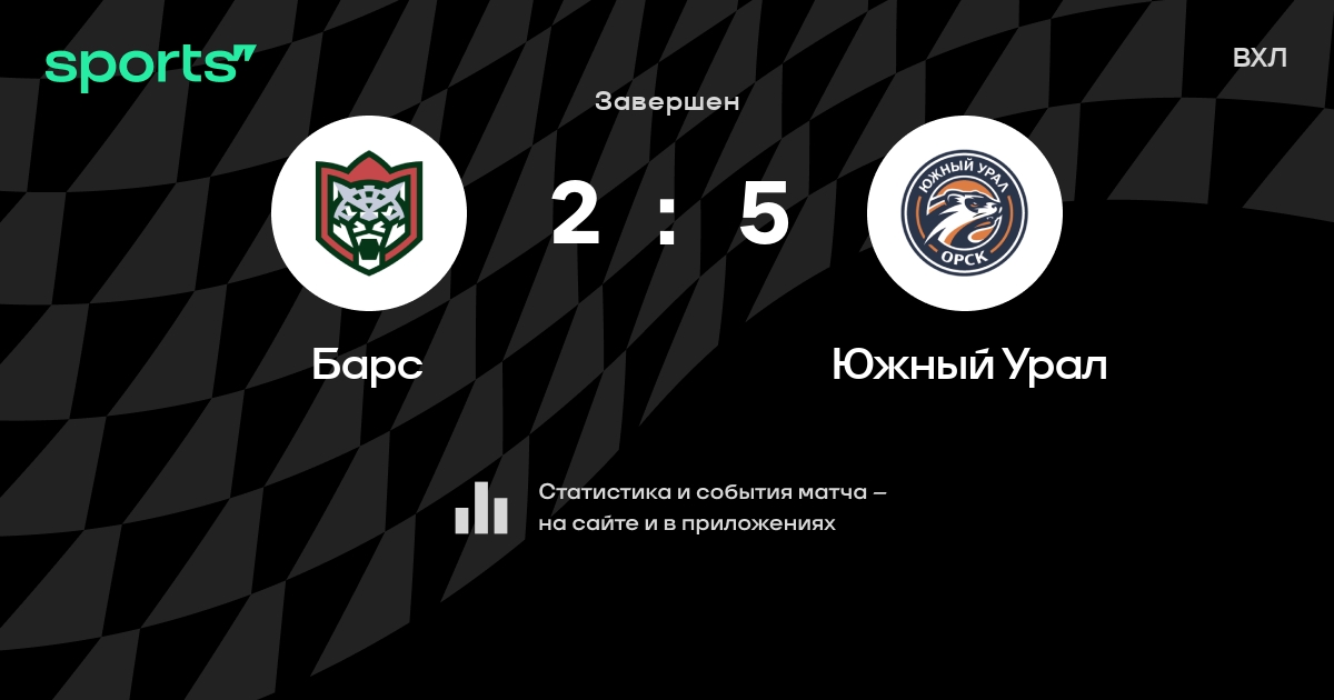 В прошедшем матче в рамках турнира ВХЛ состоялась встреча команд Барс - Южный Урал в городе Казань (Россия) на стадионе Дворец спорта (вместимость - 3523)